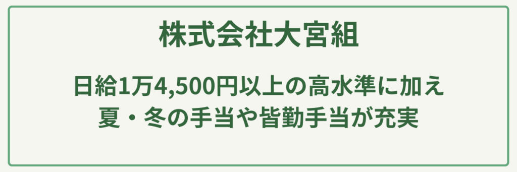 | 給与・報酬 | 日給 14,500円 〜 15,000円(賞与あり、皆勤手当あり) |