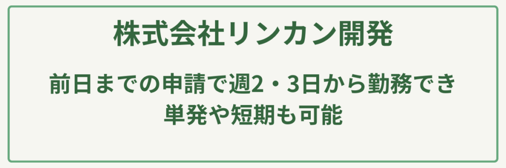 また、「履歴書不要で即面接・即勤務が可能」という特徴があるため、すぐに働き始めて収入を得たい人や、煩雑な書類準備なしで手軽に応募したい人におすすめです。