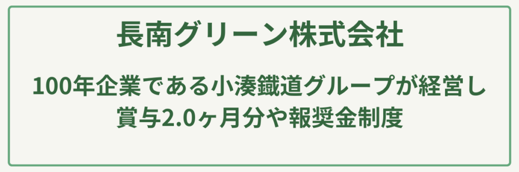 | ポイント | 雇用保険/労災保険/健康保険/厚生年金/昇給あり/交通費全額支給/資格取得支援(AT限定解除・芝草管理等)/制服貸与(空調服)/暑さ対策グッズ支給/育児・介護休暇制度/車通勤OK/転勤なし |