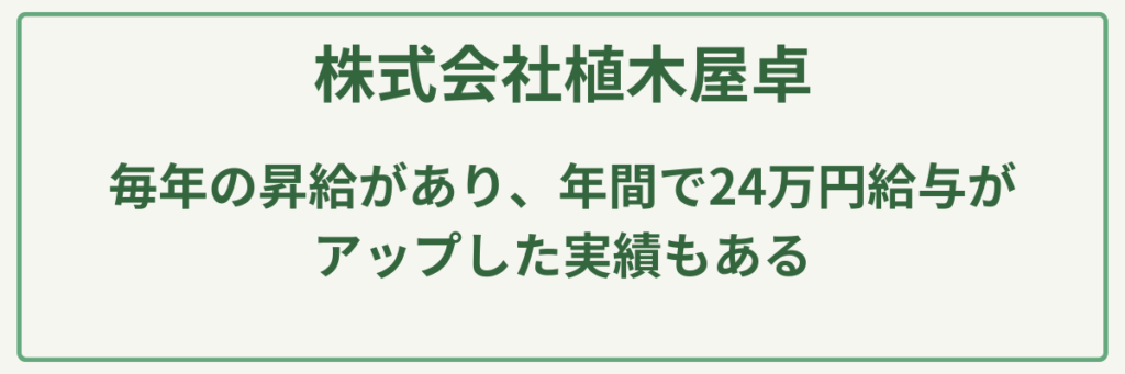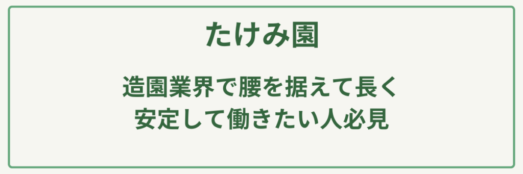 さらに、「月給制で社会保険完備、試用期間も同条件」という安定した待遇面の特徴があるため、造園業界で腰を据えて長く安定して働きたい人に最適な環境と言えます。