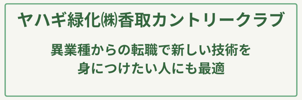 「アメリカの企業からコンサルティングを受け、世界水準のコース管理技術を導入している」という特徴があるため、最先端の専門知識を学び、芝管理のプロフェッショナルとして手に職をつけたい人におすすめです。 また、「業務は基本的に最新の機械を使用して行い、手作業を減らして体への負担を軽減している」という特徴があるため、屋外でのびのびと働きたいけれど、体力的な消耗を抑えて長く勤めたい人におすすめです。 さらに、「業務終了後にコースでの練習やプレーが可能で、グループ施設の利用も無料」という特徴があるため、仕事だけでなく自身のゴルフスキルも磨きたいゴルフ愛好家の人には最適な環境です。 「関東NO.1評価のチャンピオンコースを舞台に、年齢や学歴を問わず昇格のチャンスがある」という特徴があるため、一流の現場で自分を高め、次世代のリーダーを目指したい意欲的な人におすすめと言えます。