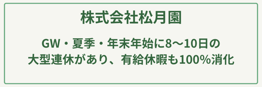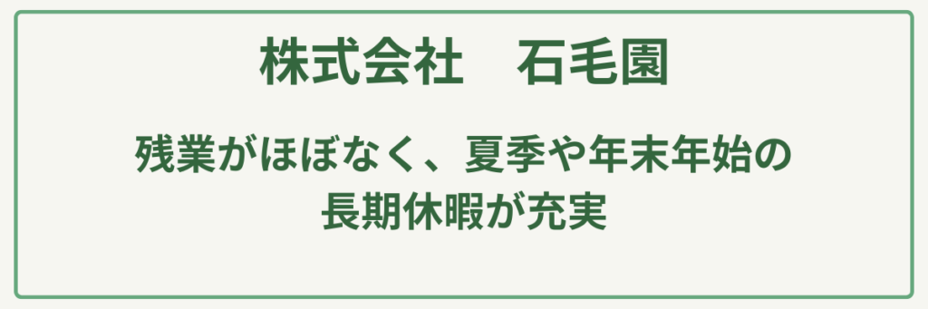 また、「残業がほぼなく、夏季や年末年始の長期休暇が充実している」という特徴があるため、仕事とプライベートのメリハリを大切にしたい人におすすめです。