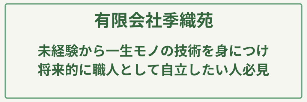 「会社負担の資格取得支援や独立支援制度がある」という特徴があるため、未経験から一生モノの技術を身につけ、将来的に職人として自立したい人におすすめです。