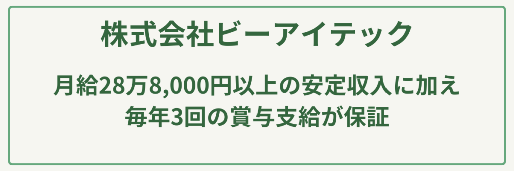| 給与・報酬 | 月給 230,000円 〜 275,000円(賞与年2回:前年度実績計3ヶ月分) |